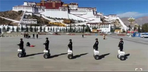 為了保證旅行者在布達(dá)拉宮出行安心、舒心、放心,拉薩市公安局城管分局廣場派出所成立2個巡邏隊(duì),增設(shè)2個值守點(diǎn),全天候不斷開展巡邏防范,每天陪伴民警的就是躍迪警用平衡車。