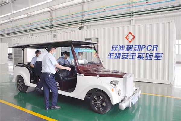 徐翀理事長一行走進躍迪集團生產車間,現場查看企業生產、作業情況,并進入躍迪集團新產品核酸檢測方艙認真聽取了解了方艙使用功能、作業流程、安全性能等方面的介紹。徐翀理事長一行積極肯定了躍迪醫療系列車的優勢和實用性,并對公司在疫情防控和醫療救護方面做出的貢獻表示高度贊揚。