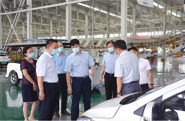 徐翀理事長一行實地考察我公司沖壓、焊裝、涂裝、總裝四大工藝生產線,詳細了解了機器人自動焊接生產線的情況,對全自動智能化*科技與新能源汽車生產結合表示充分認可與贊揚。